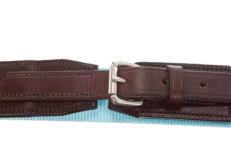 This overgirth has a double ply 2" english elastic in each end which provides elasticity.