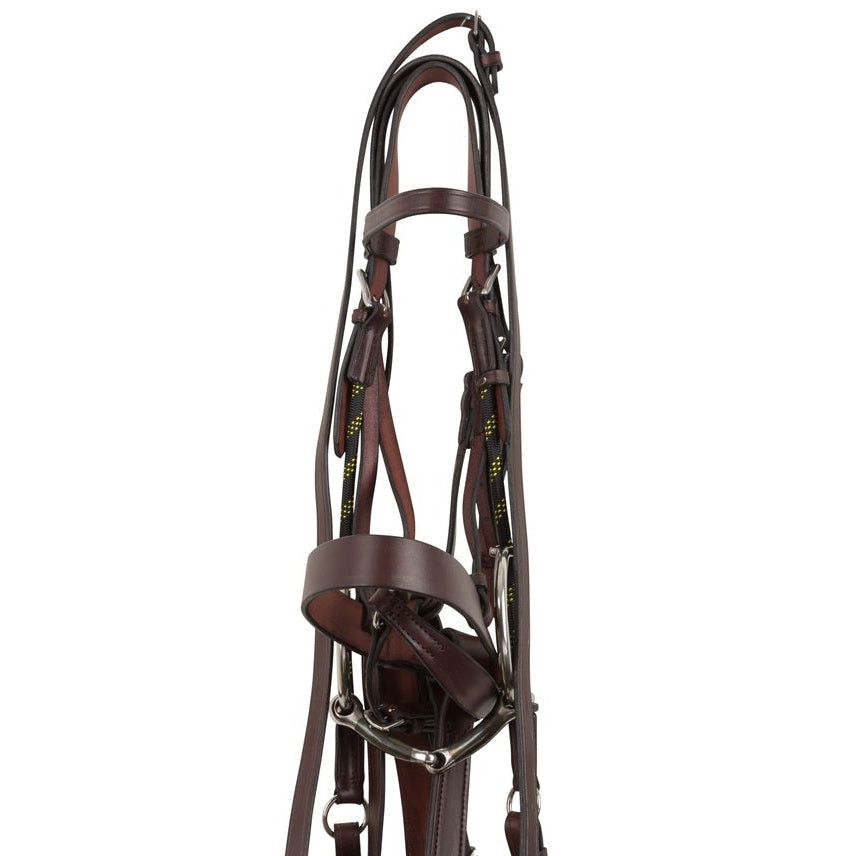 This bridle is handcrafted in the USA using premium English vegetable-tanned leather, carefully processed through a high-quality tanning method that enhances durability, flexibility, and longevity. The leather develops a rich finish over time while maintaining its strength and structure, even under demanding use.