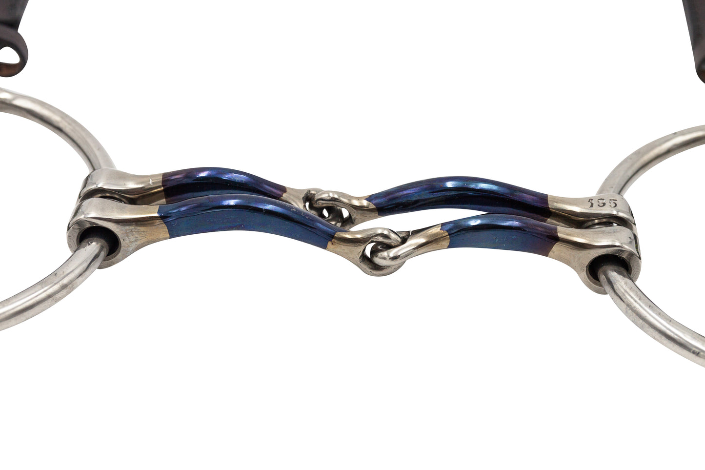The Barry is a severe bit due to the center links of the two pieces being offset by 20mm giving it a double nutcracker action, which creates more tongue and bar pressure.